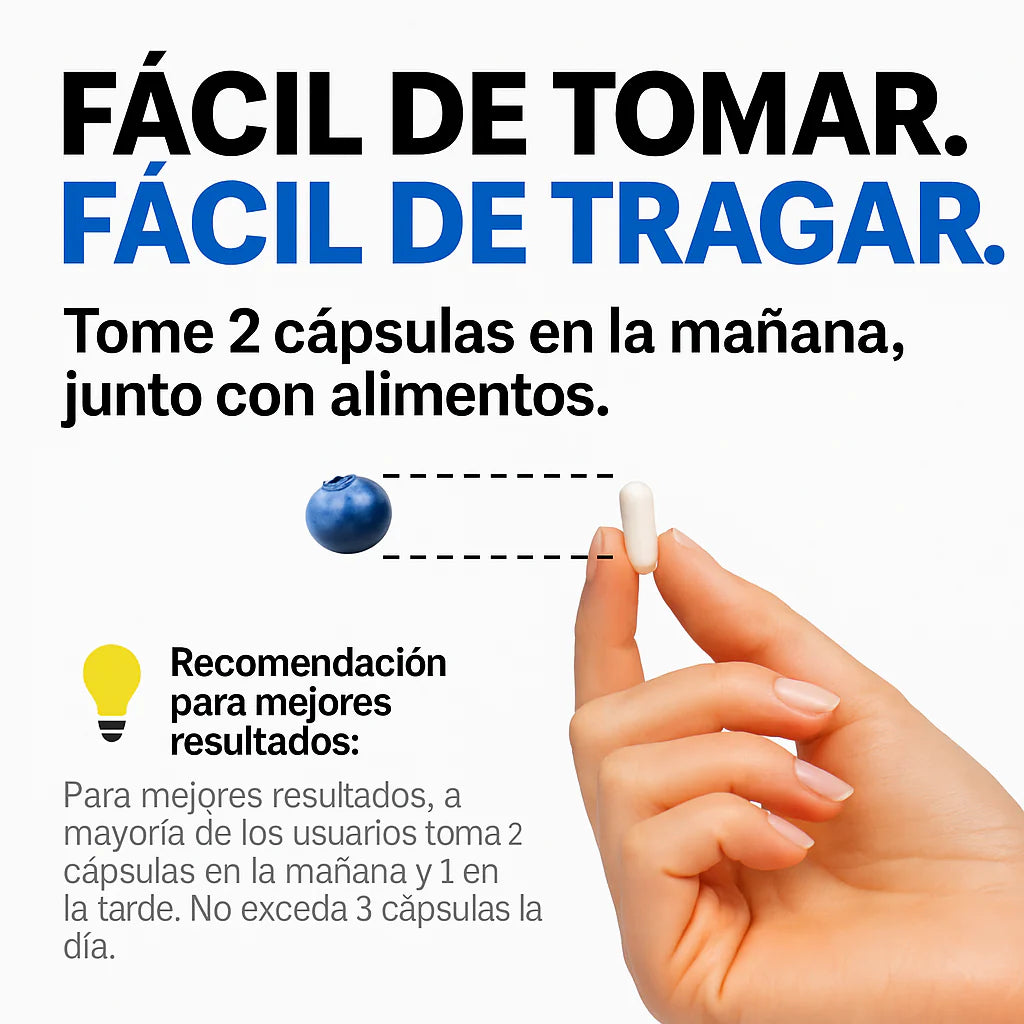 Toma 1 cápsula al día con un vaso de agua, preferiblemente con alimentos, para una mejor absorción y comodidad digestiva.