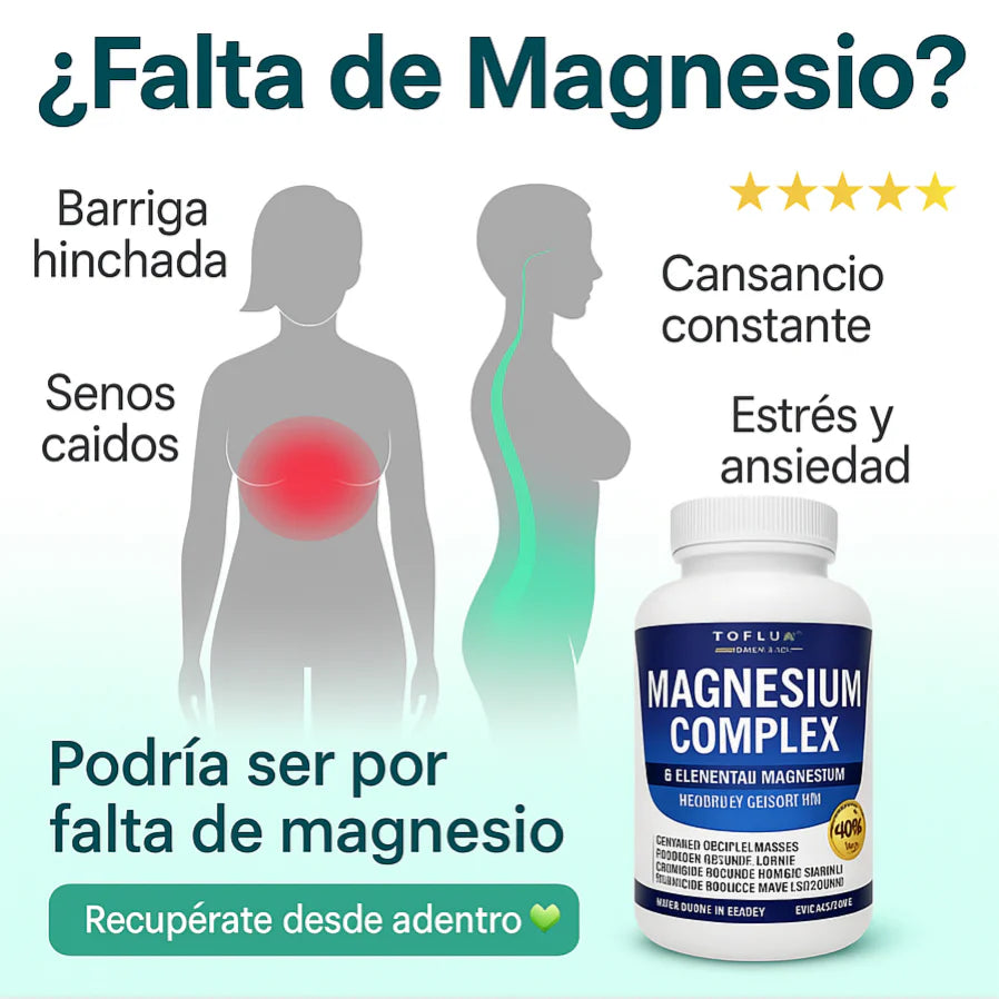 El magnesio es esencial para tu salud, pero no todos los suplementos ofrecen una solución completa. Magnesium Complex 8 en 1 fortalece tus huesos, apoya la función muscular y ayuda a calmar tu mente frente al estrés diario. Cada cápsula te ofrece la tranquilidad de estar cuidando tu bienestar interno mientras mantienes tu cuerpo en equilibrio, sintiéndote más ligera, fuerte y en control.