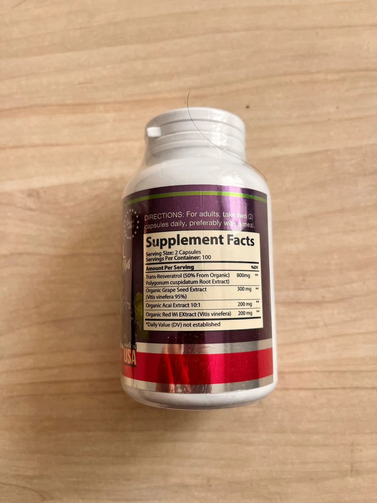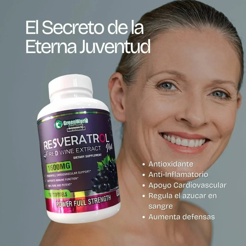 Este suplemento antioxidante, a base de extracto de vino tinto, contiene una potente dosis de 490mg por cápsula, lo que lo convierte en un aliado perfecto para combatir los signos del envejecimiento, mejorar la circulación sanguínea y proteger tu corazón ❤️. Además, su fórmula está diseñada para fortalecer tu sistema inmunológico, ayudando a tu cuerpo a mantenerse saludable.